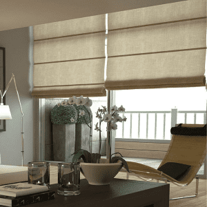 Roman blinds are made from fabric that is designed to pleat when raised. The blinds are constructed by mounting slats, which are connected to cords, into the back of a fabric panel. When the blind is lifted, the cords pull the slats together and force the blind to fold into pleats.