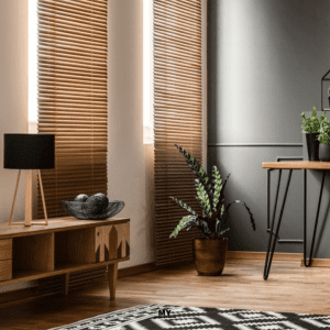 Vertical blinds are vertical lengths of fabric that are clipped to a sliding track at the top and operated with a plastic wand or chain.